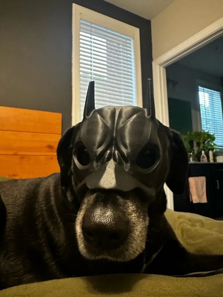Get your furry sidekick in on the superhero fun with this 3D printed Batman mask for dogs! Your pooch will be the talk of the dog park with this unique and playful accessory. Transform your dog into the caped crusader and make everyone smile with this fun addition to their wardrobe.
