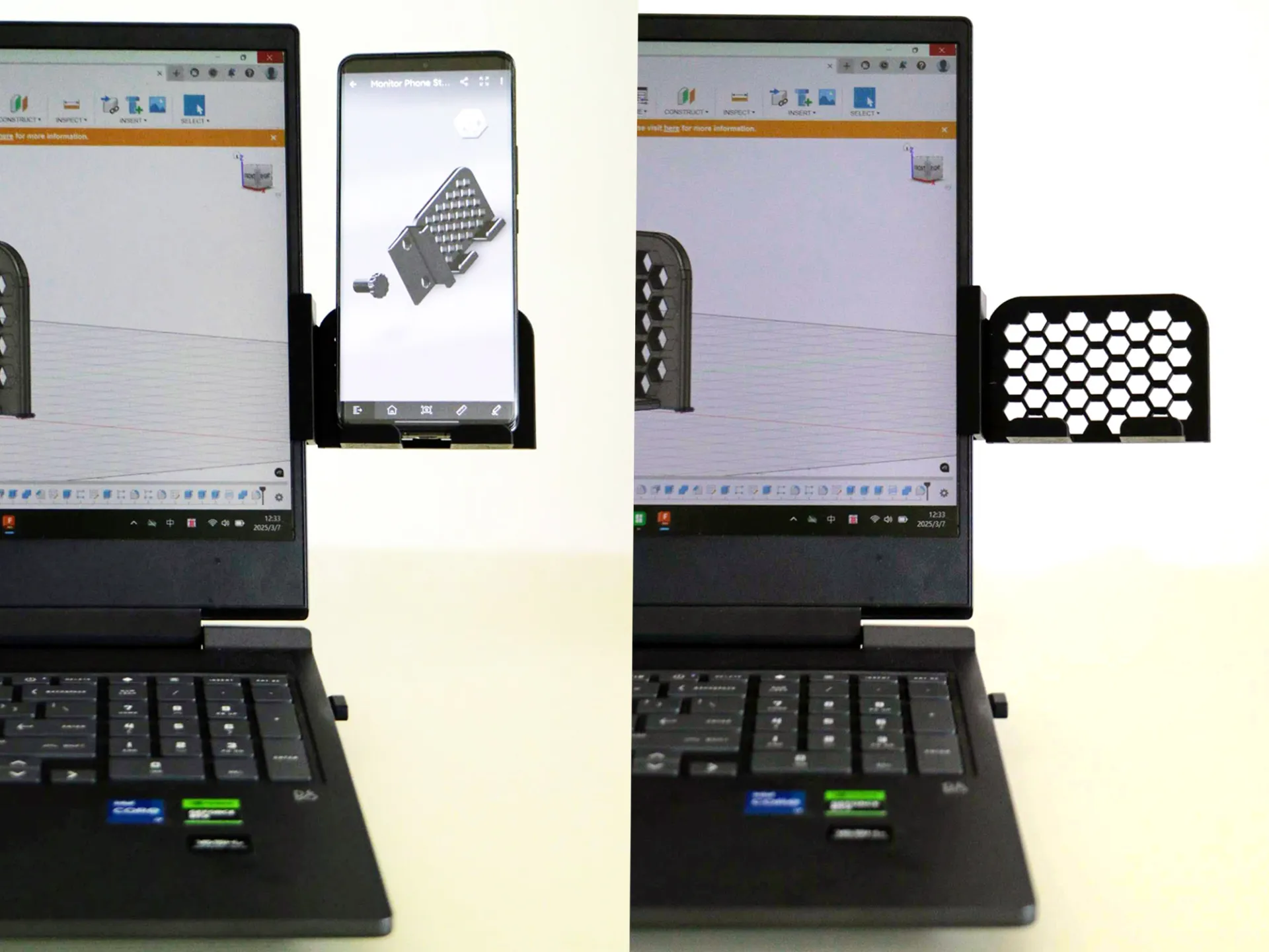 Securely attach your phone to your monitor with our 3D printed Monitor Phone Holder. Stay connected and hands-free while you work, study, or binge-watch your favorite shows. Never again miss an important notification or have your phone slip off the desk.